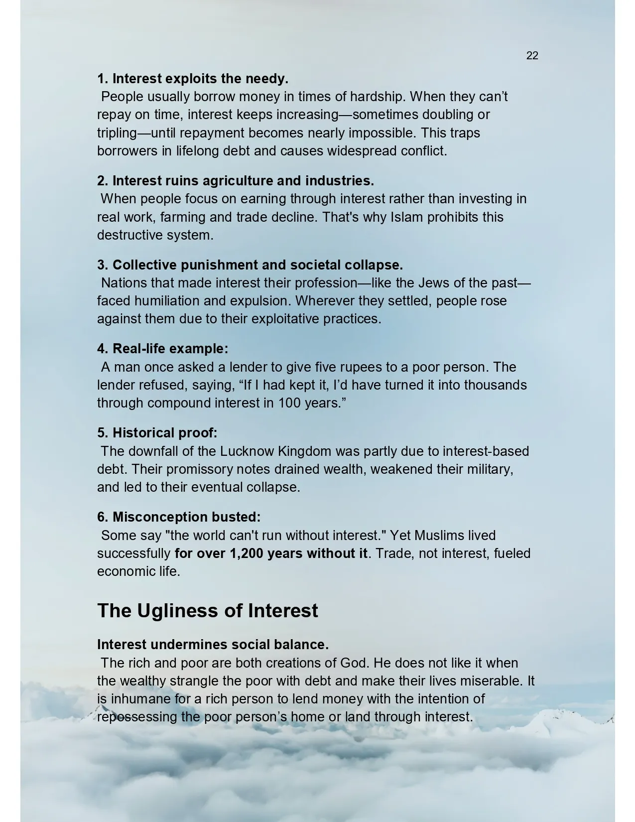 This book is essential for anyone dealing with money, business or personal finance. It provides a clear Islamic perspective on why interest is harmful and how avoiding it leads to a blessed and ethical financial life.