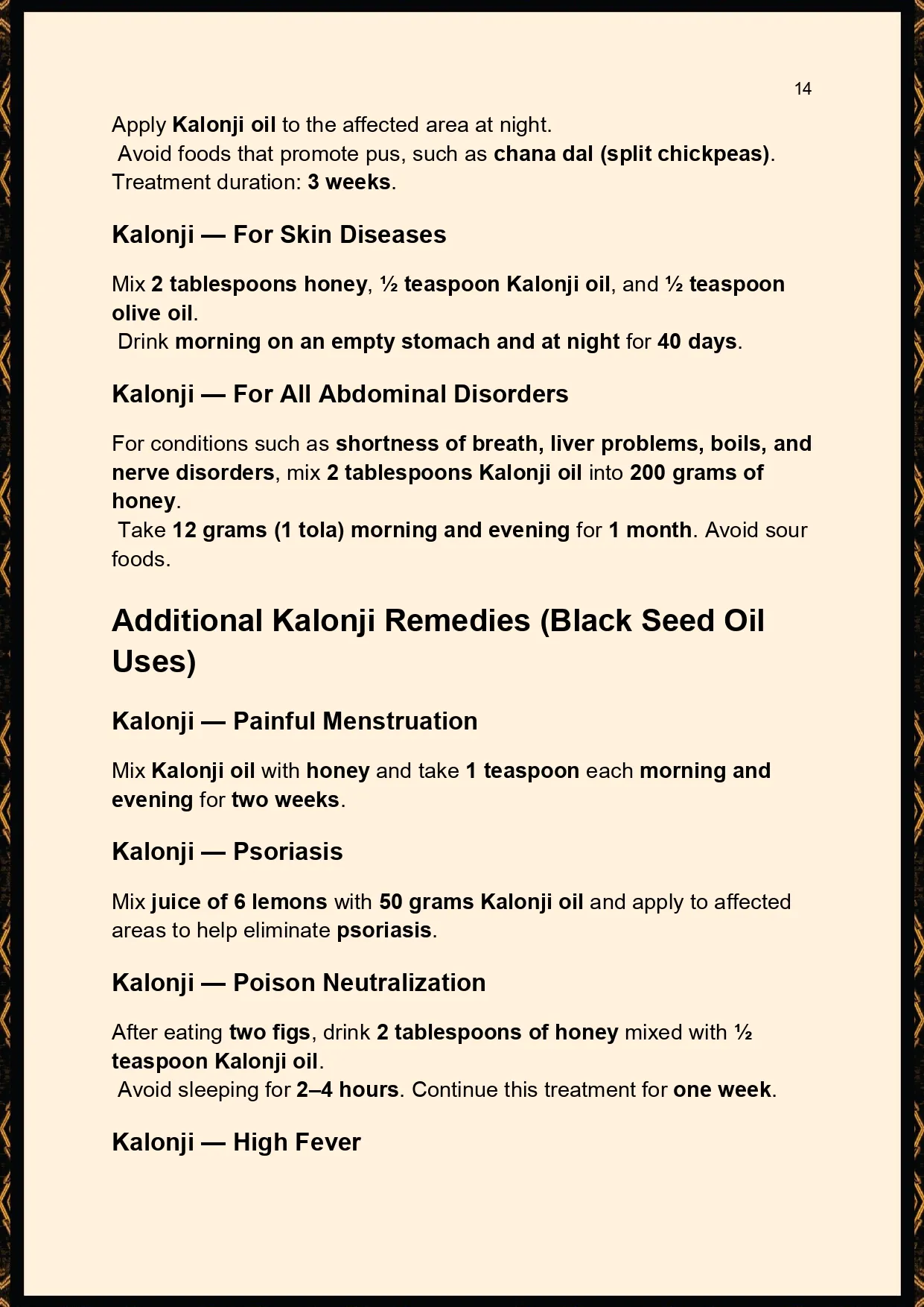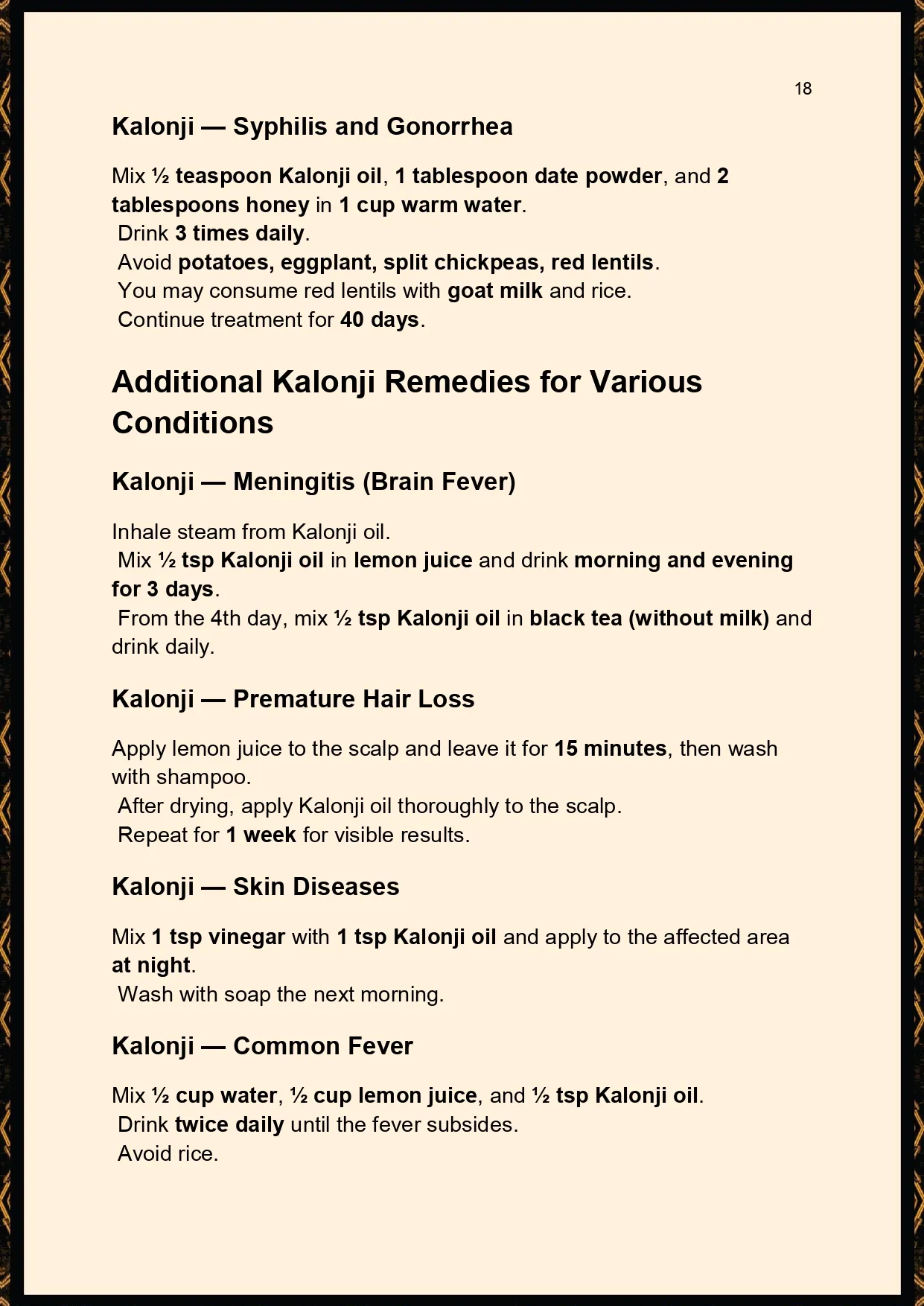 ● All-Natural: Remedies use Kalonji oil with honey, juices, herbs, and food items.