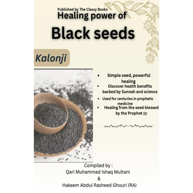 Categories: English Books, Authors, Qari Muhammad Ishaq Multani Tags: Black seed benefits for female, Black seed benefits for male, Black seed cure Hadith, Black seed healing book, Black seed health benefits, Black seed oil benefits for women, Black seed oil side effects kidney, Can I eat black seeds raw, Faith-based healing, Healing through Sunnah, Holistic Islamic wellness, Home remedies with Kalonji, How to use black seed, How to use black seed for weight loss, Islamic medicine and healing, Islamic natural remedy guide, Kalonji benefits in Islam, Kalonji for digestion and health, Natural health and wellness, Natural immunity booster, Natural Islamic healing, Natural remedies with Kalonji, Prophetic medicine book, Sunnah-based treatments, Traditional Islamic medicine, What are 10 benefits of black seed oil