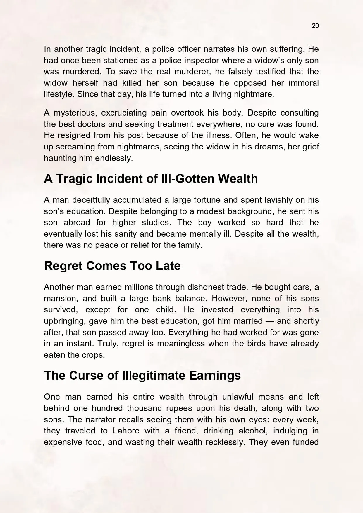 • Real-Life Incidents – Includes eye-opening stories of individuals and families suffering due to haram income, making the lessons deeply impactful.