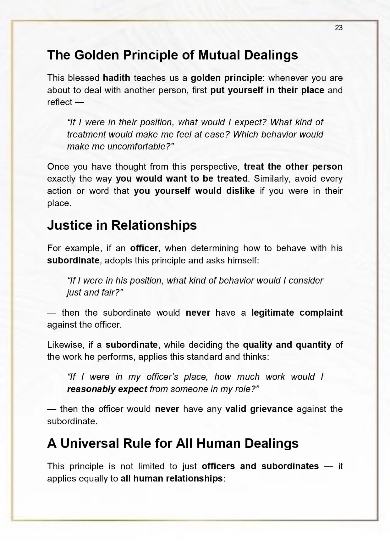• Real-Life Incidents – The book uses historical events and contemporary examples (e.g., Clifford Olson’s case, Sheikh-ul-Hind’s salary request) to explain Islamic values practically.