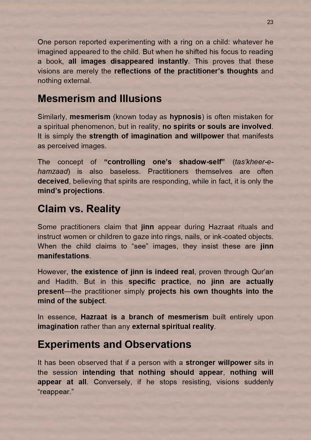 4. Demystification of Hazarat – Clears misconceptions about summoning spirits and highlights the psychological factors involved.